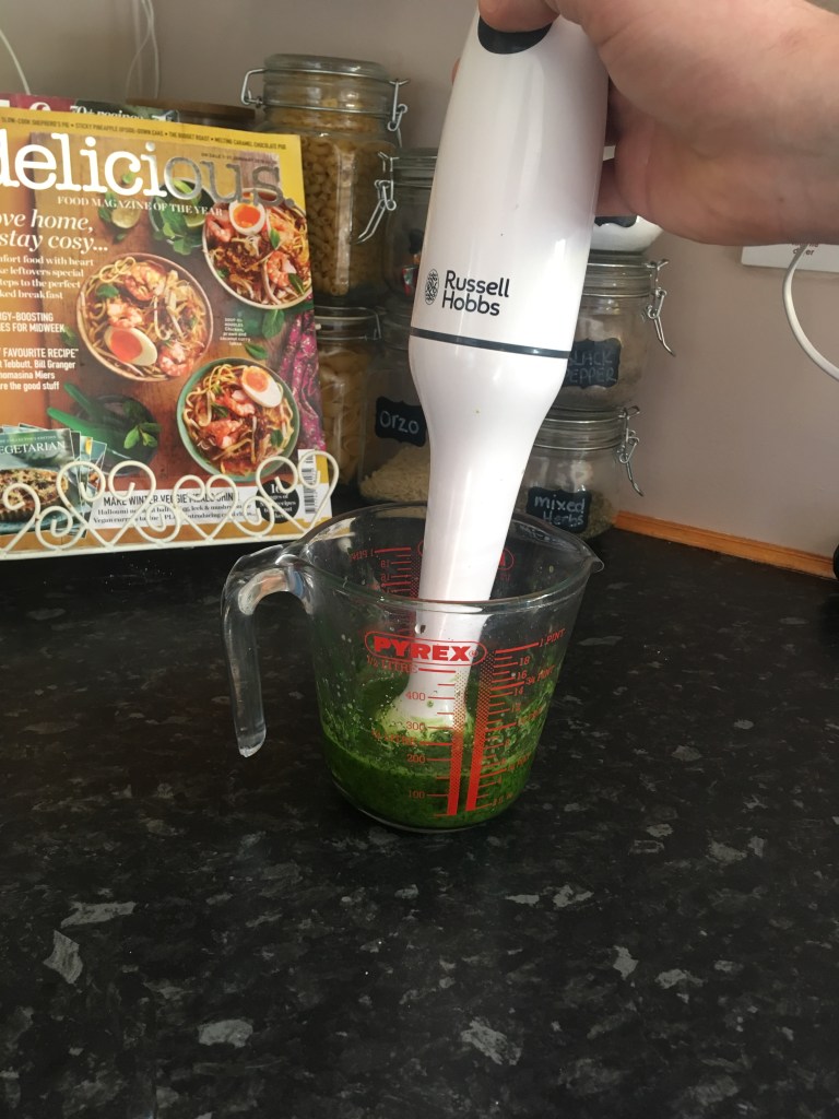 Once bacon is crispy, remove from the pan and keep warm under the grill. In the same pan, heat a little more oil. While the mushrooms cook, finely chop half of the parsley and with 50ml of olive oil, blitz together to create a parsley oil.