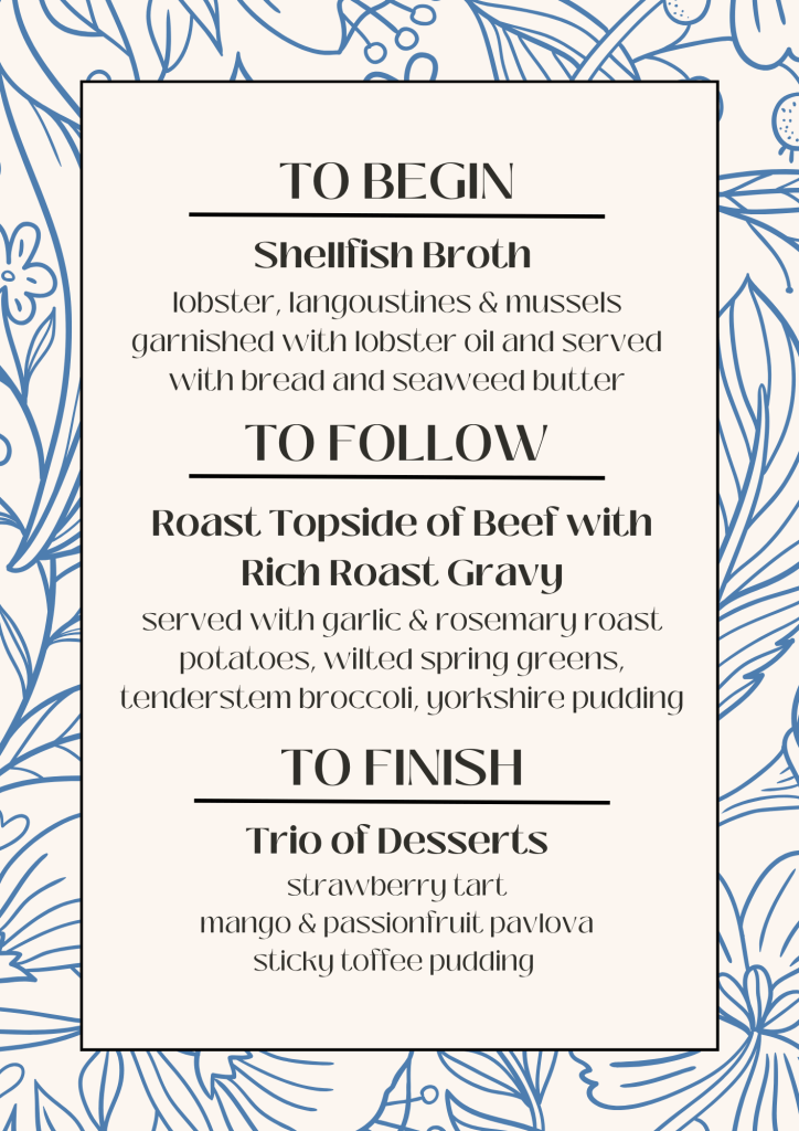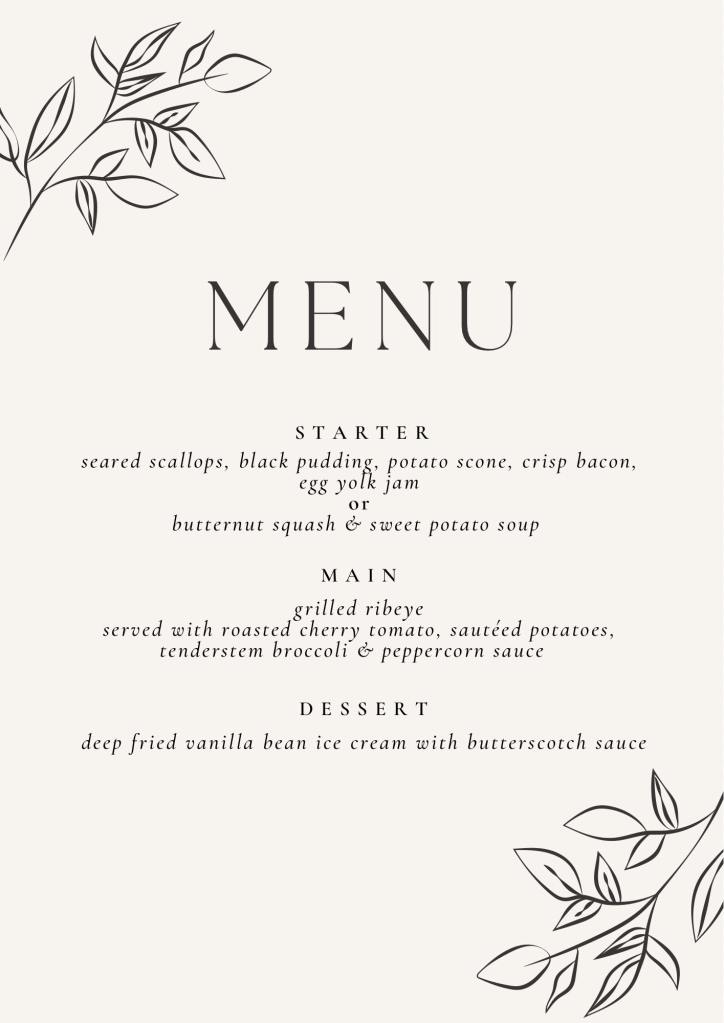 Previous Menus Posted on 22nd Oct 2024 by theniseachchef Share this: Click to share on X (Opens in new window) X Click to share on Facebook (Opens in new window) Facebook Like Loading...